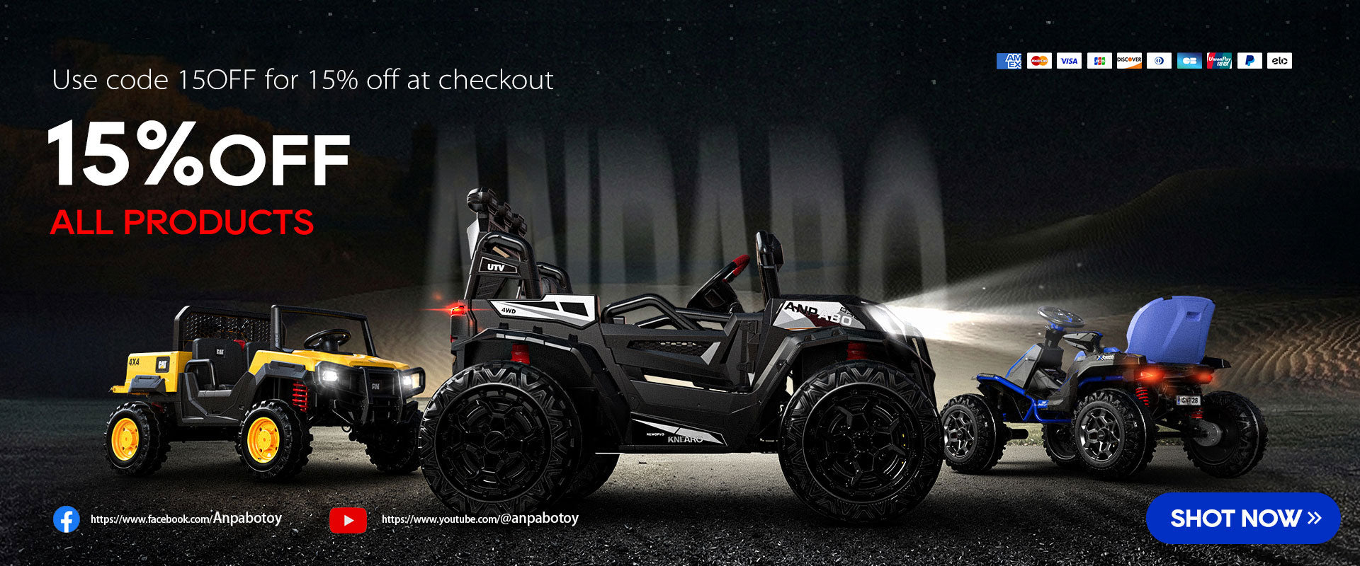 We produce premium, fully compliant ride-on toys with reliable quality. Let’s set up a 15-minute call to discuss our Preferred Dealer Program and tiered pricing. Email: anpabotoy.service@gmail.com