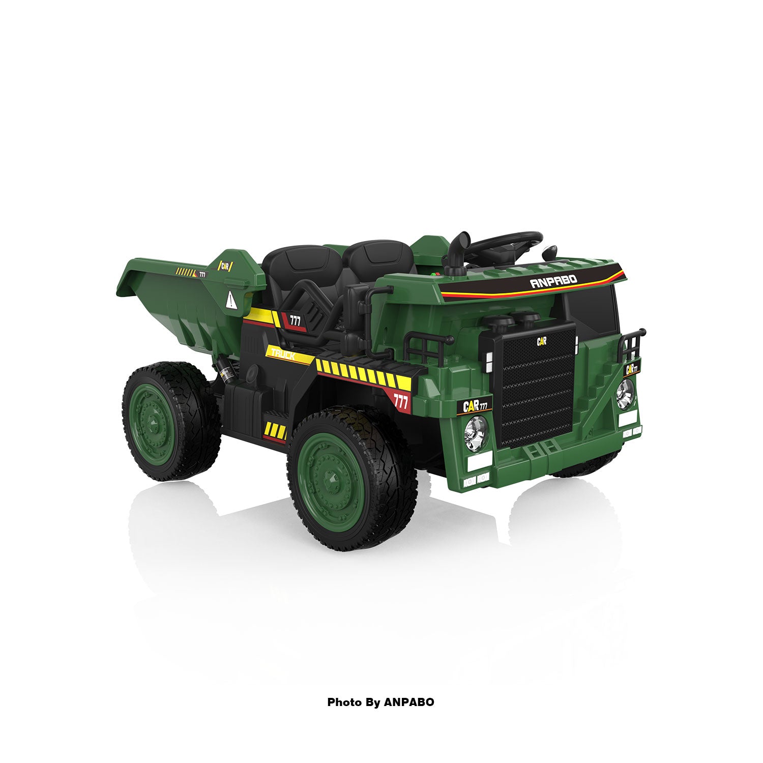Electric Auto-Lifting Dump Bed: Simulates real construction truck functions. Kids can load snow, leaves, or sand with the included shovel, and tip the bed using the joystick for easy unloading.