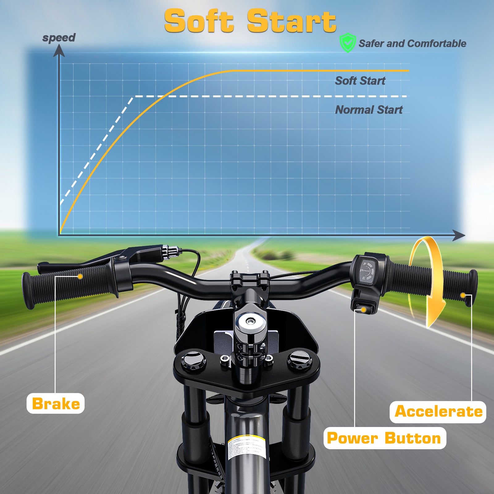 Pro-Style Speed Control: The 16" model reaches up to 25 km/h, with a responsive twist-grip throttle that allows for precise speed management.